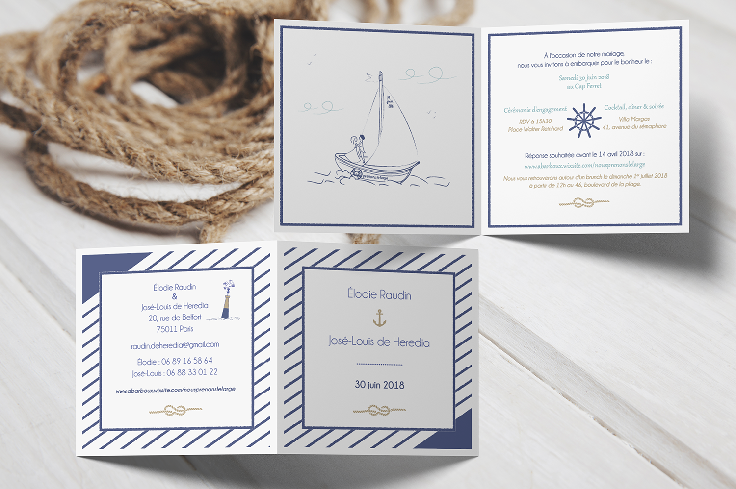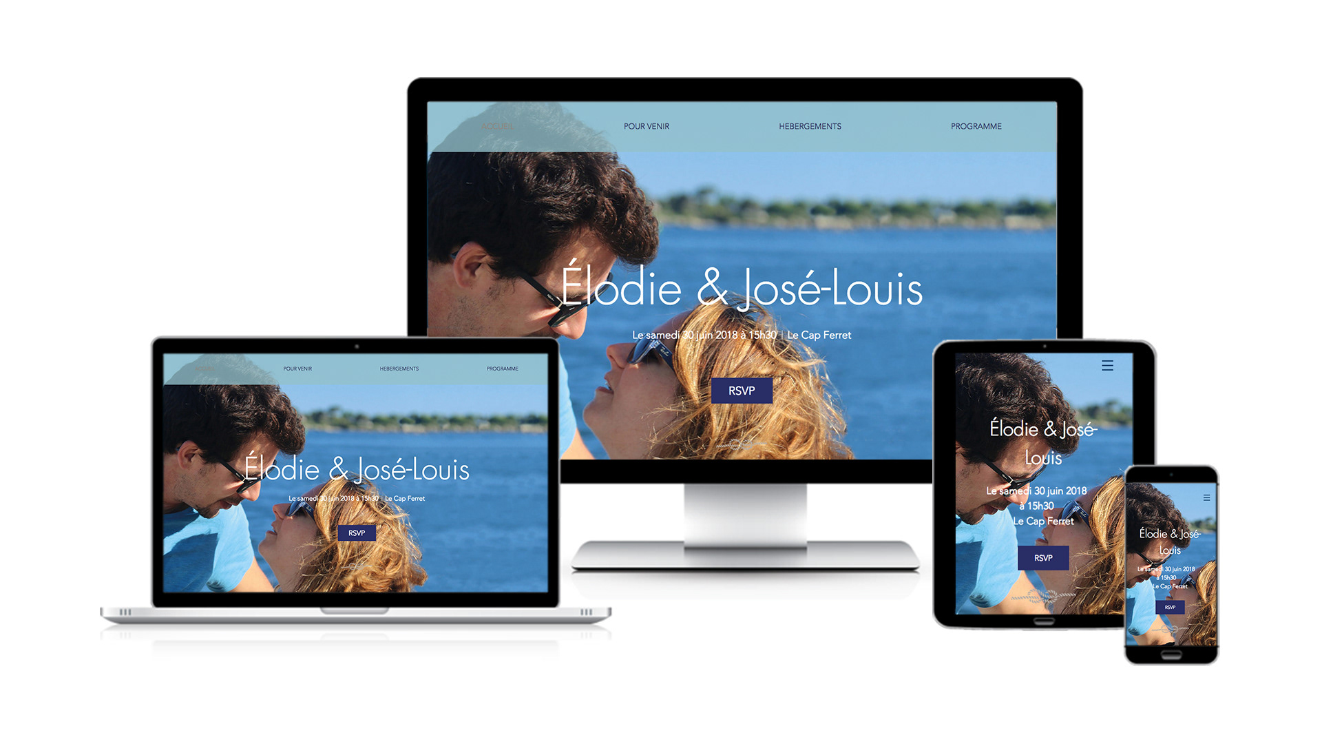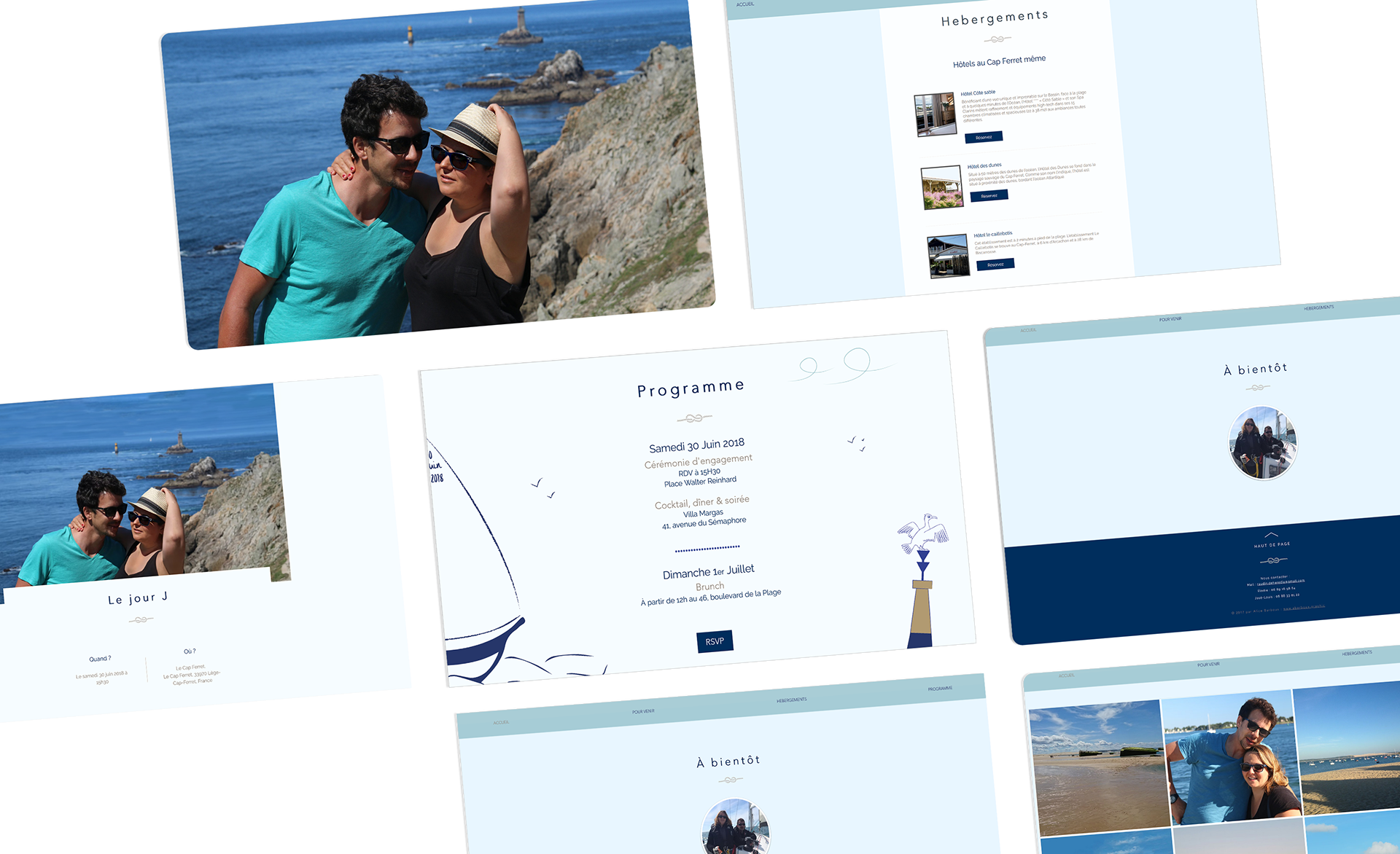 Direction artistique pour un Mariage : Retouches photos, graphismes, illustrations Création des supports de communication online / offline : Save de date, faire-part, menu, étiquettes, plan de table, goodies, etc. Design UI et intégration du site en CMS.