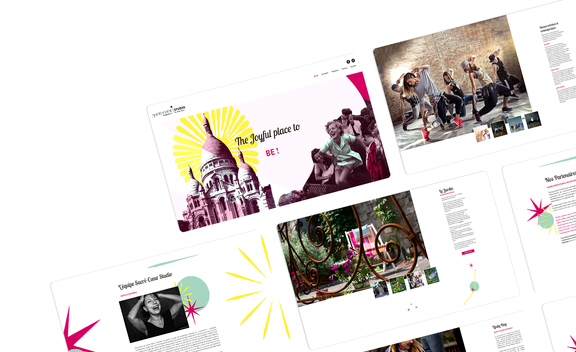 Identité visuelle complète : Charte graphique, supports de communication print et web, graphismes, retouches photos design UI et intégration du site en CMS
